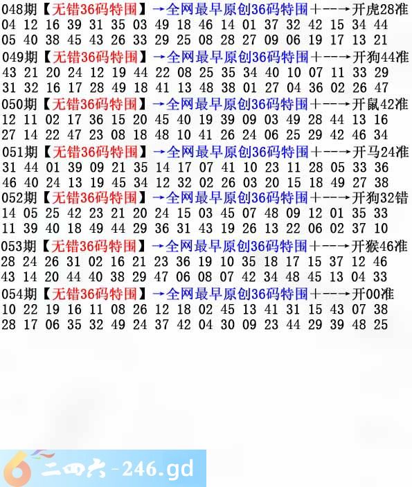 054期:无错36码