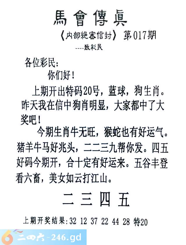 017期:首发推荐:≮馬會傳眞≯→(香港正版)