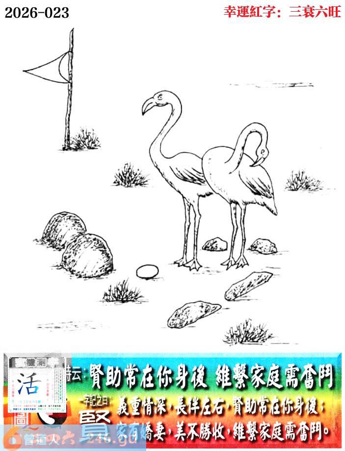 023期老版跑狗一字記之曰:【賢】 詩雲:賢助常在你身後,維繫家庭需奮鬥。 義重情深,長伴左右,賢助常在你身後; 家有嬌妻,美不勝收,維繫家庭需奮鬥。 玄機測字:《活》